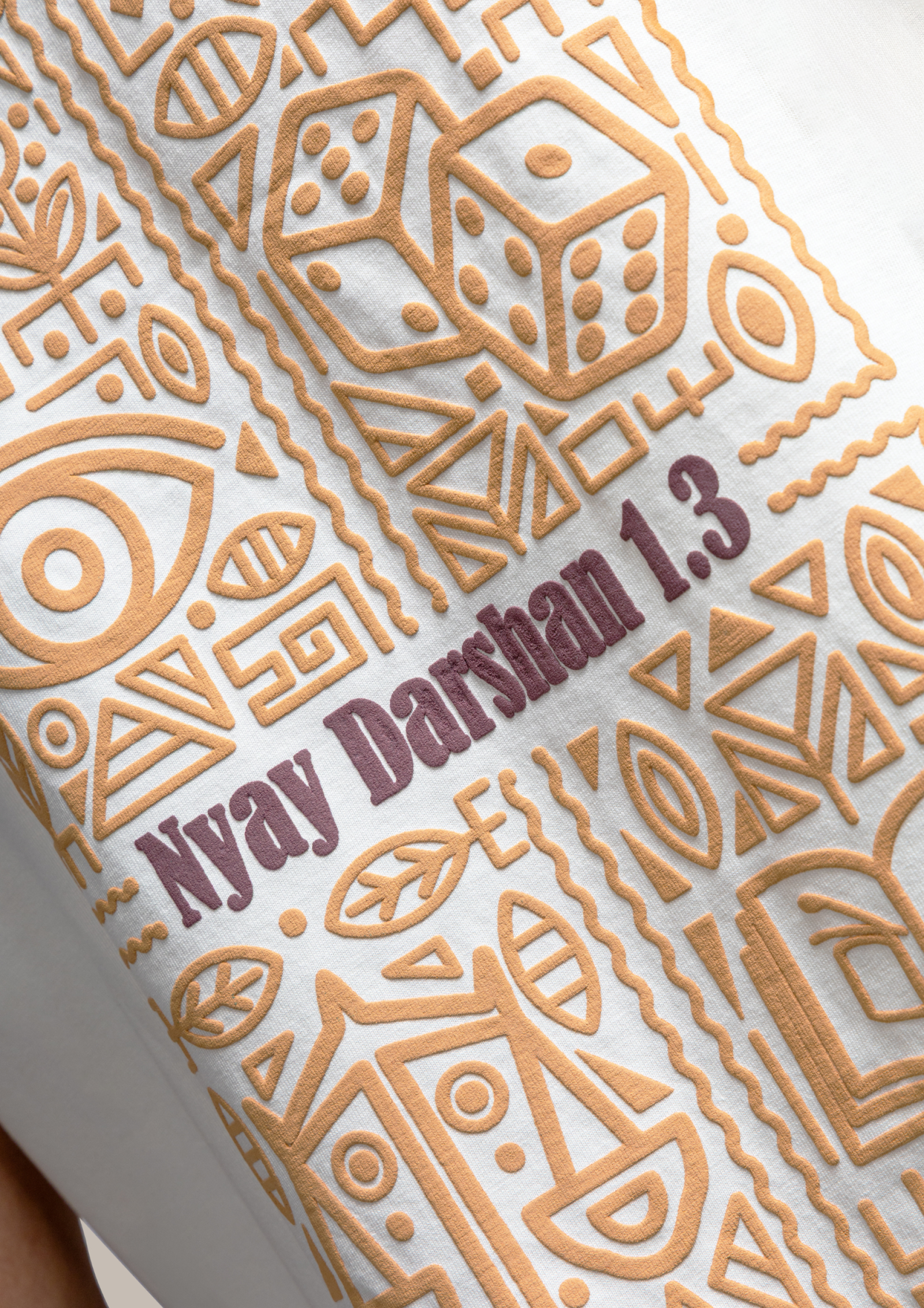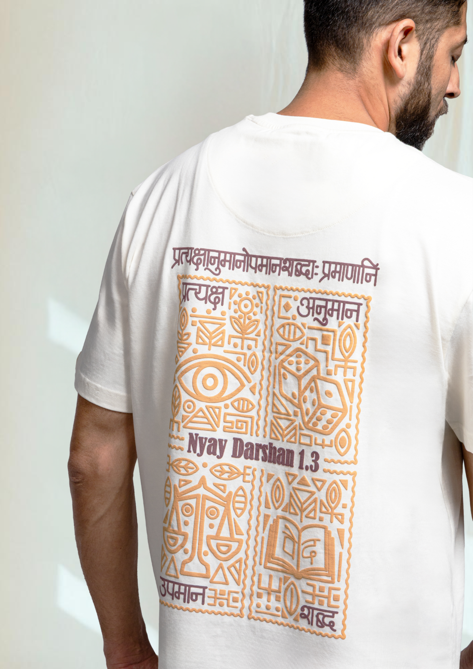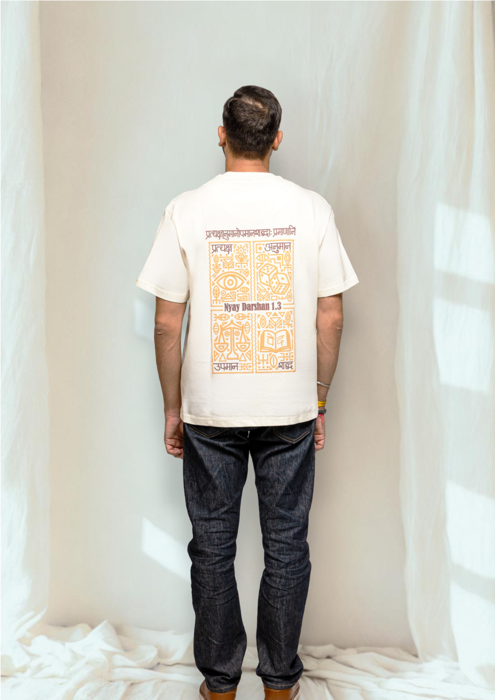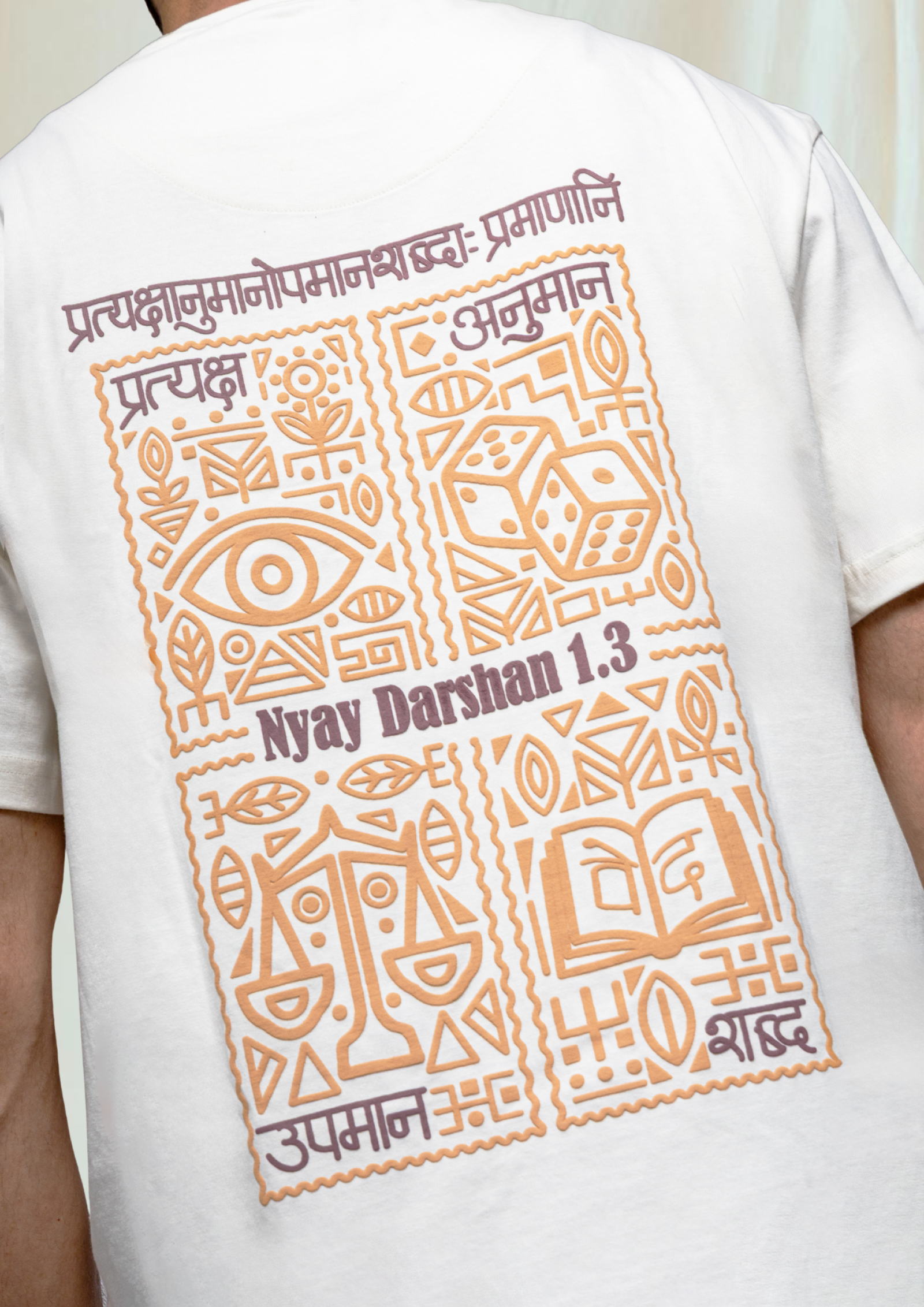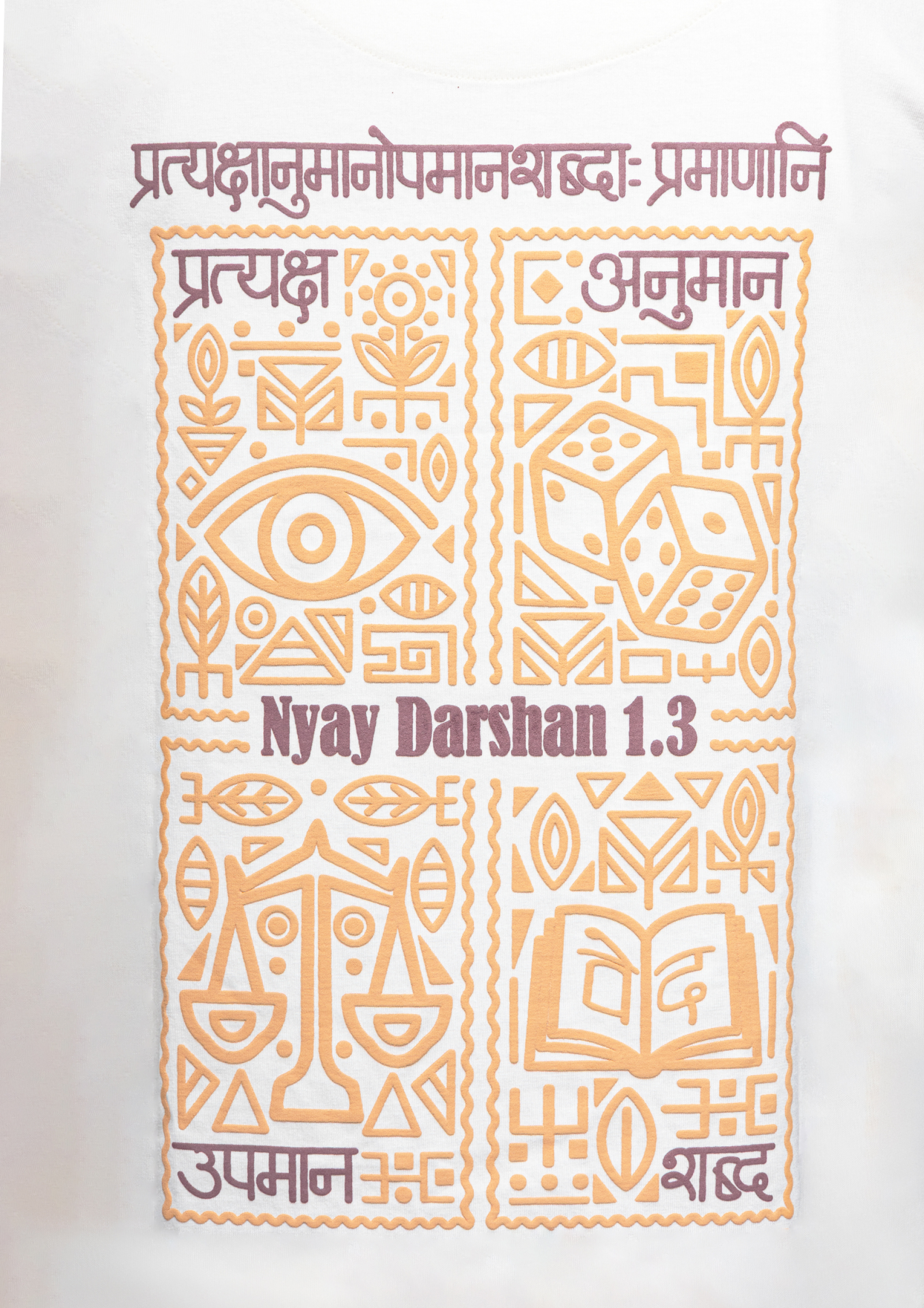 This quartet forms the backbone not just of philosophical debate but of daily discernment. Each pramana removes one more layer of uncertainty, refining our vision and grounding our convictions in clarity. To wear this tee is to don an emblem of epistemic mastery—a tribute to those who seek meaning beyond impulse.