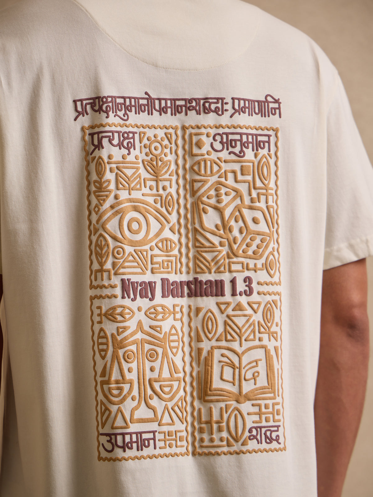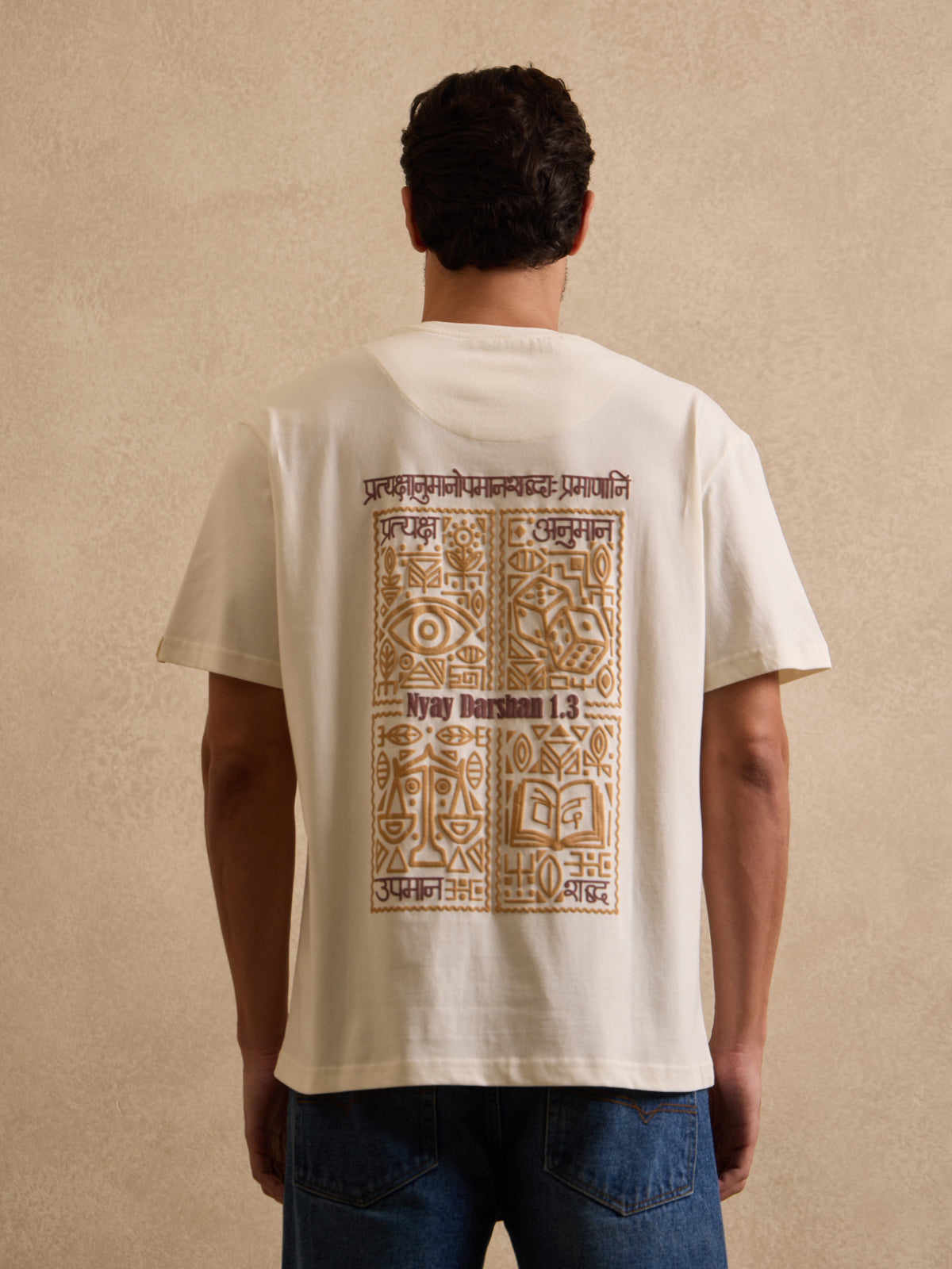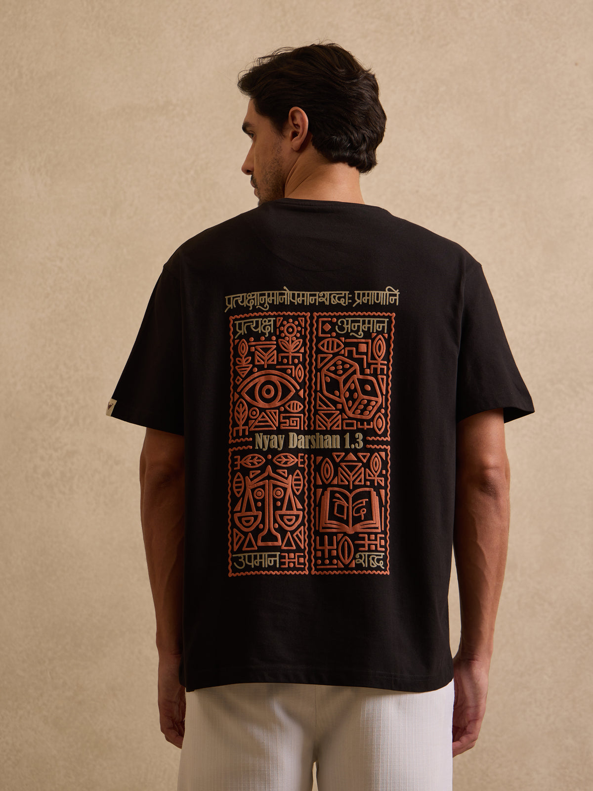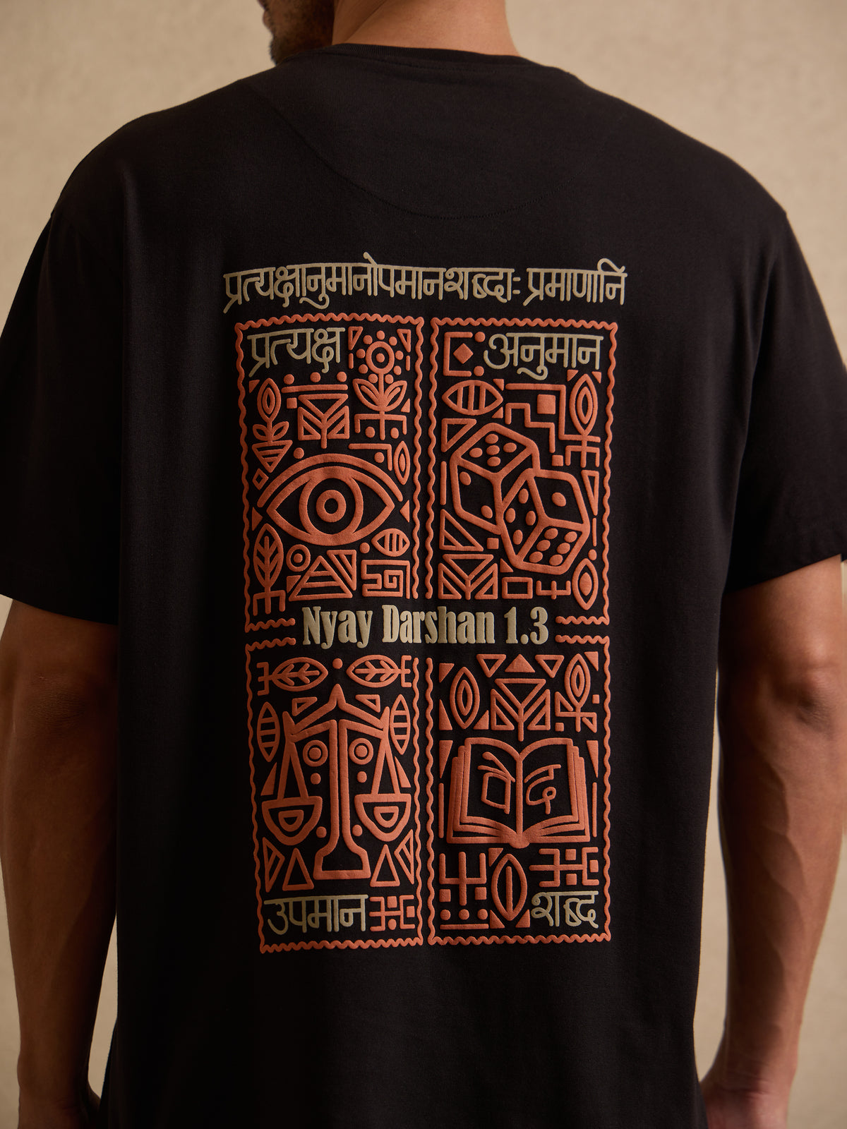 This quartet forms the backbone not just of philosophical debate but of daily discernment. Each pramana removes one more layer of uncertainty, refining our vision and grounding our convictions in clarity. To wear this tee is to don an emblem of epistemic mastery—a tribute to those who seek meaning beyond impulse.