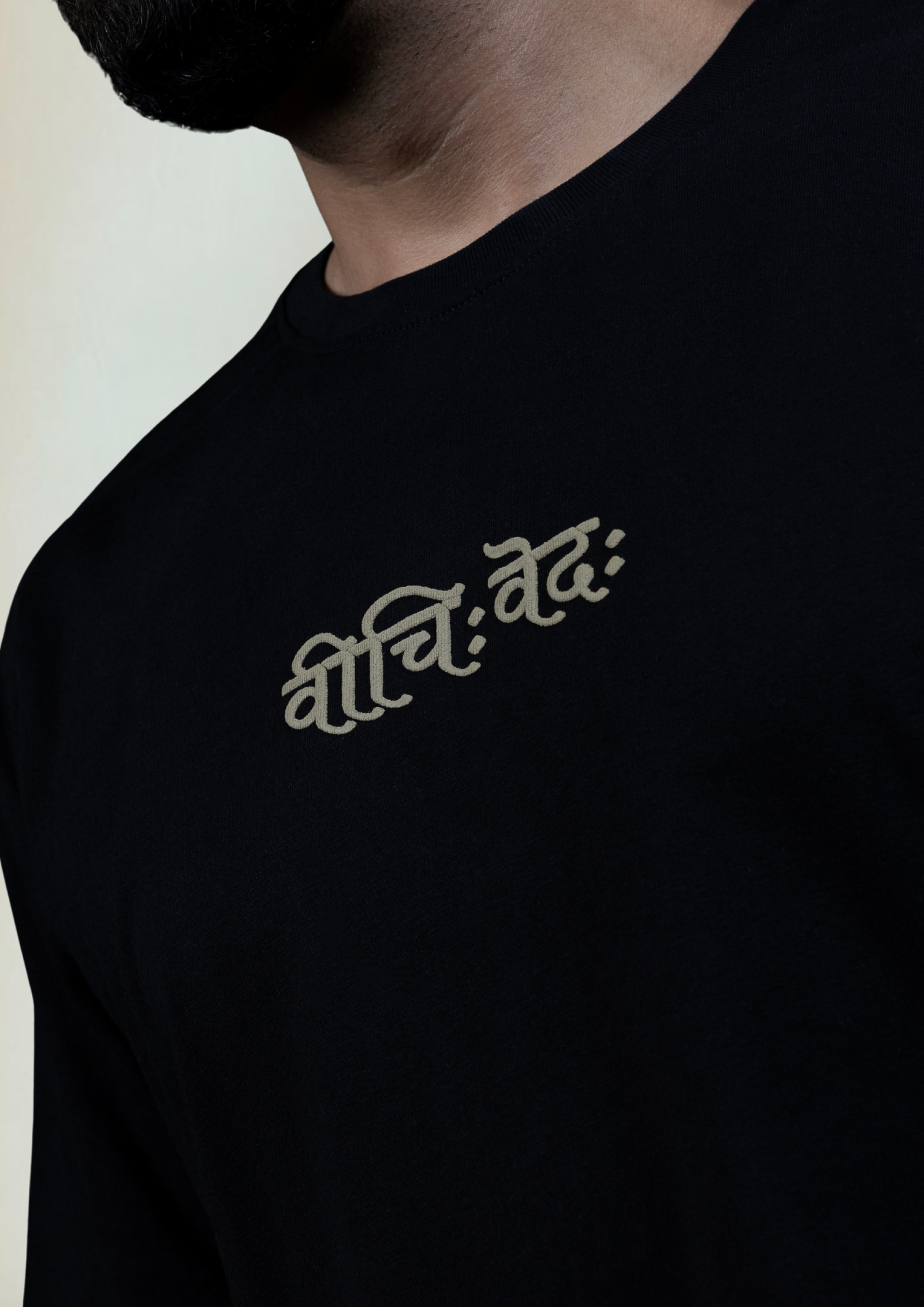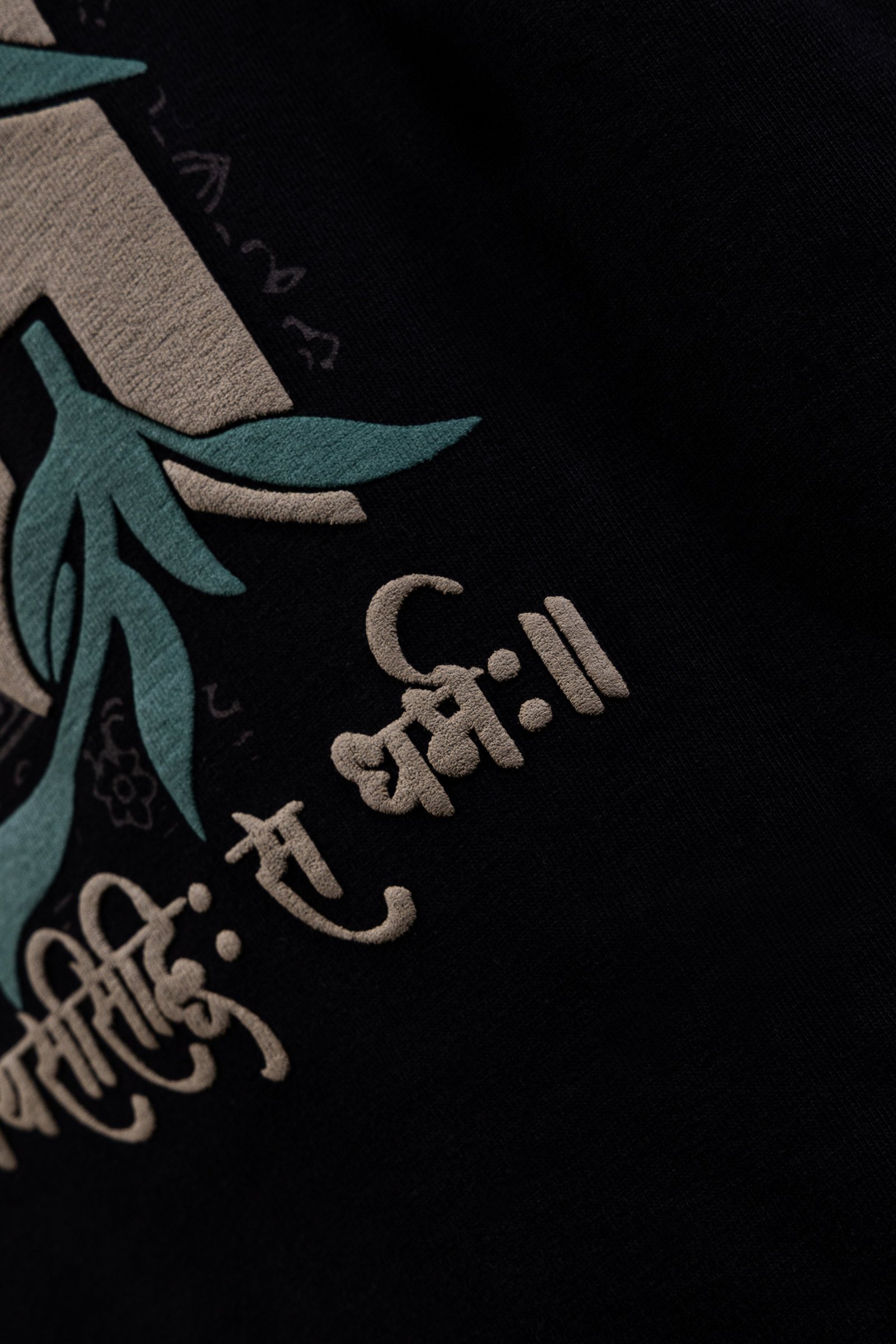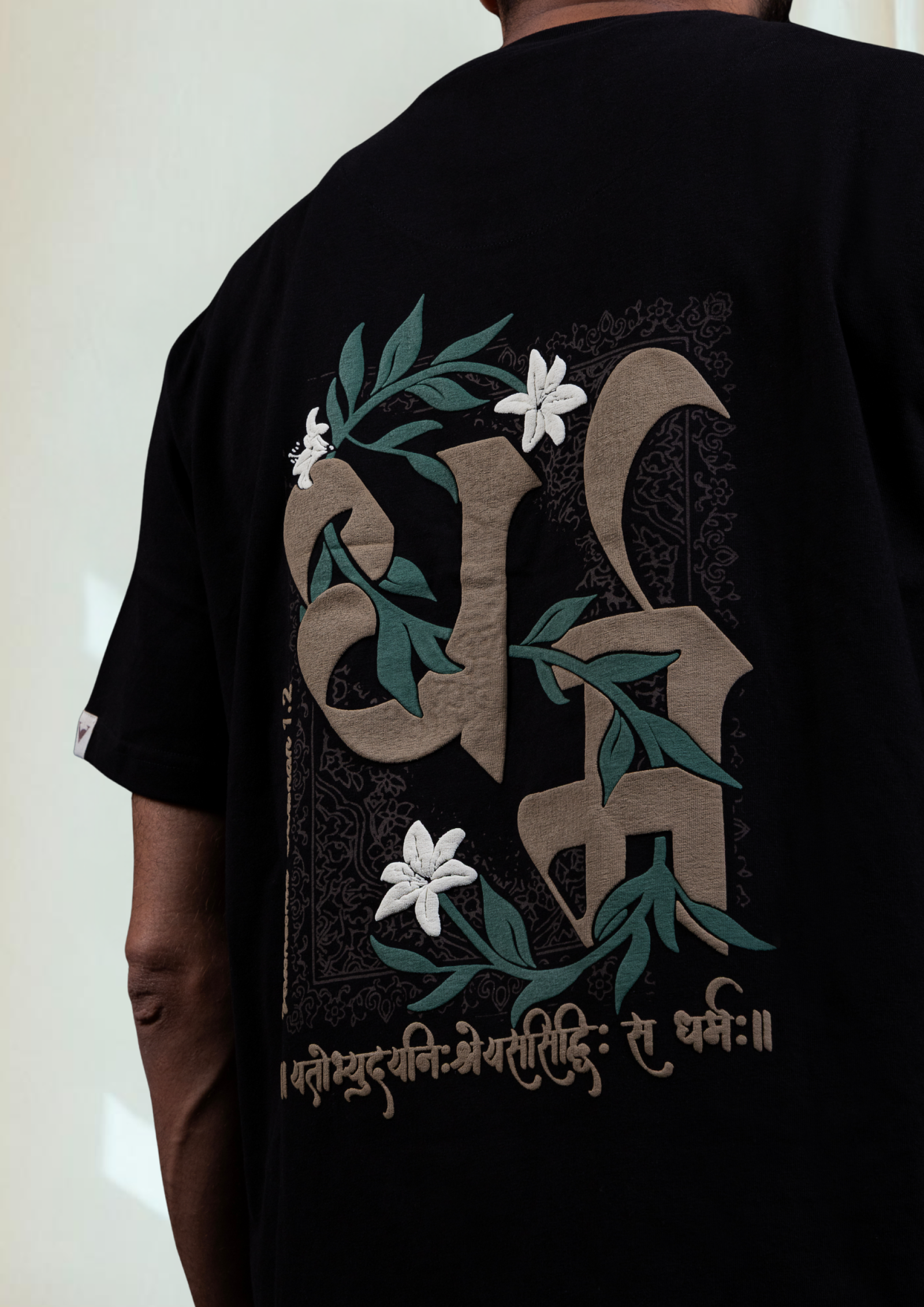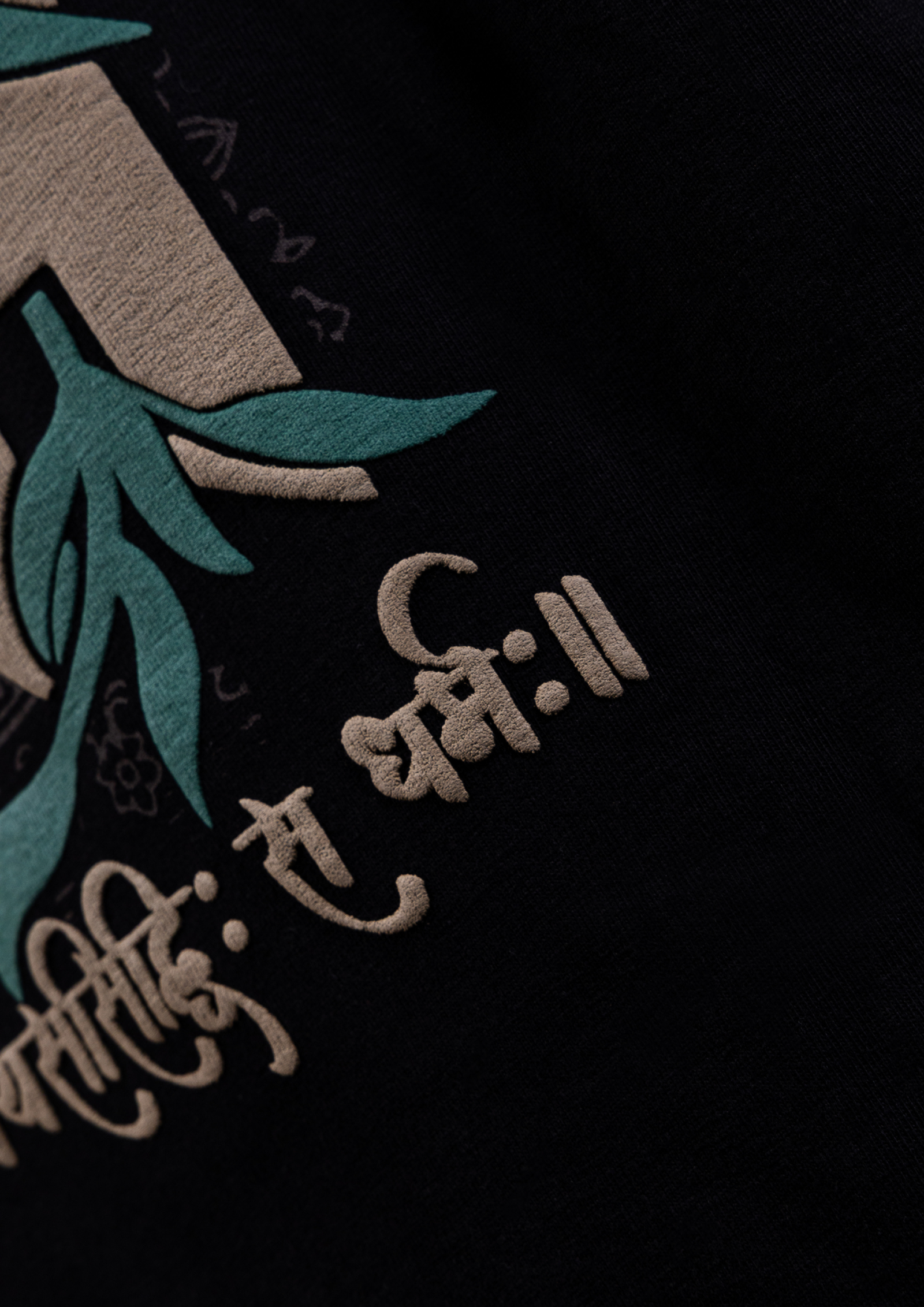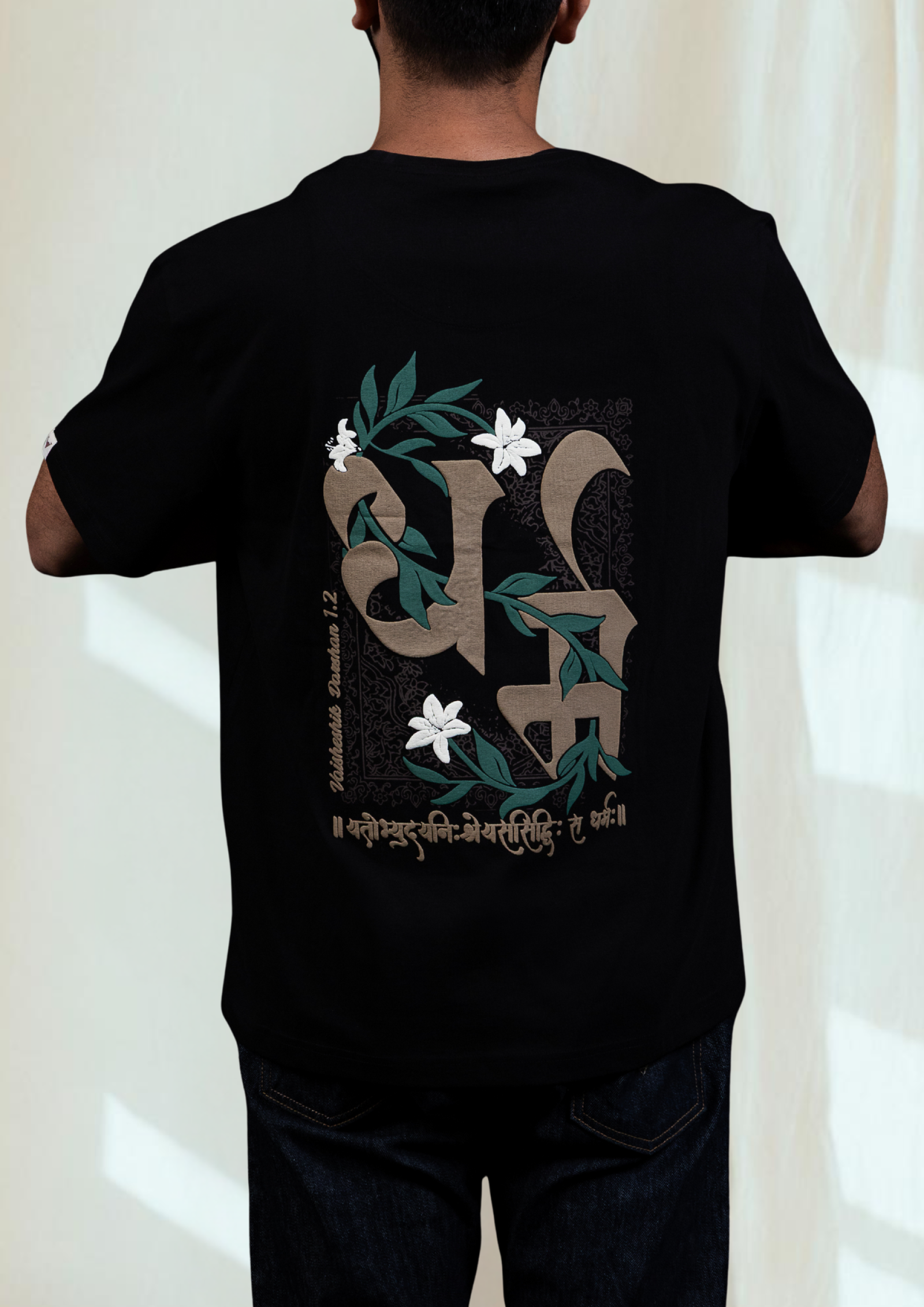 Wearing this tee is a joyful reminder that the highest path is not either-or, but both-and: to thrive in this world while preparing for the next, to honor the body but realize the soul, to live with wisdom and purpose. This is the spirit of Dharma—where abhyudaya and niḥśreyasa meet.