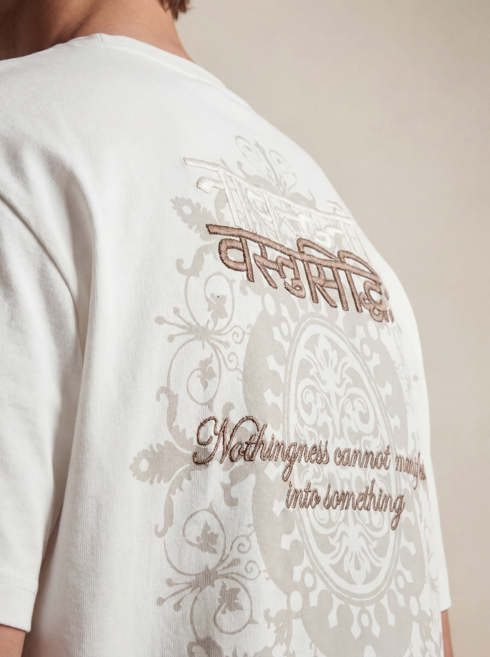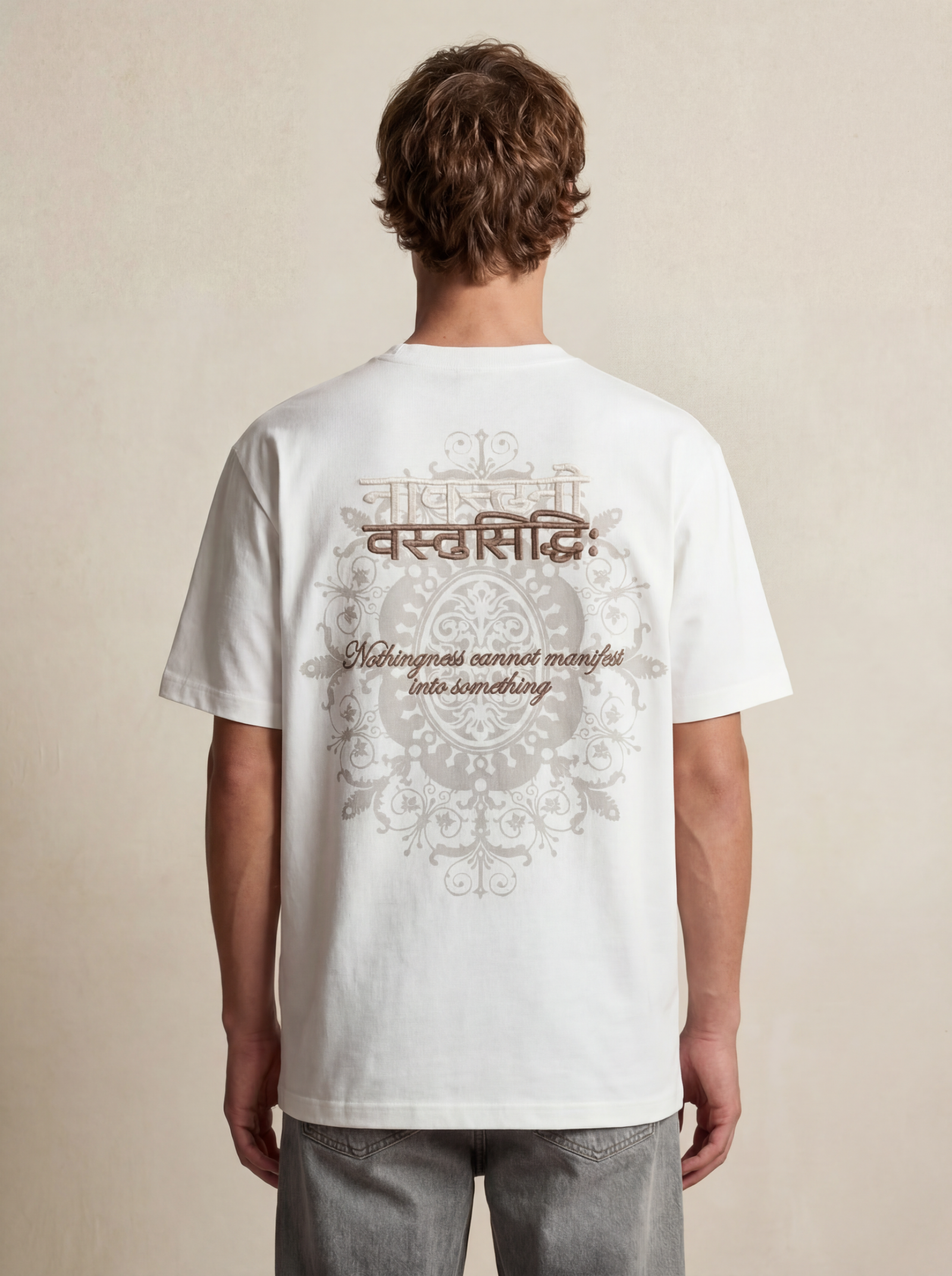 Nāvastuno Vāstusiddhiḥ: The answer to the ultimate question of how anything—beauty, thought, or even a t-shirt—comes to be.