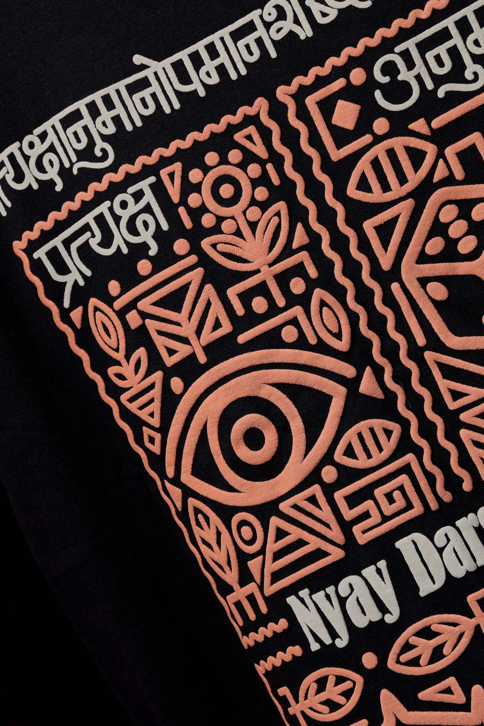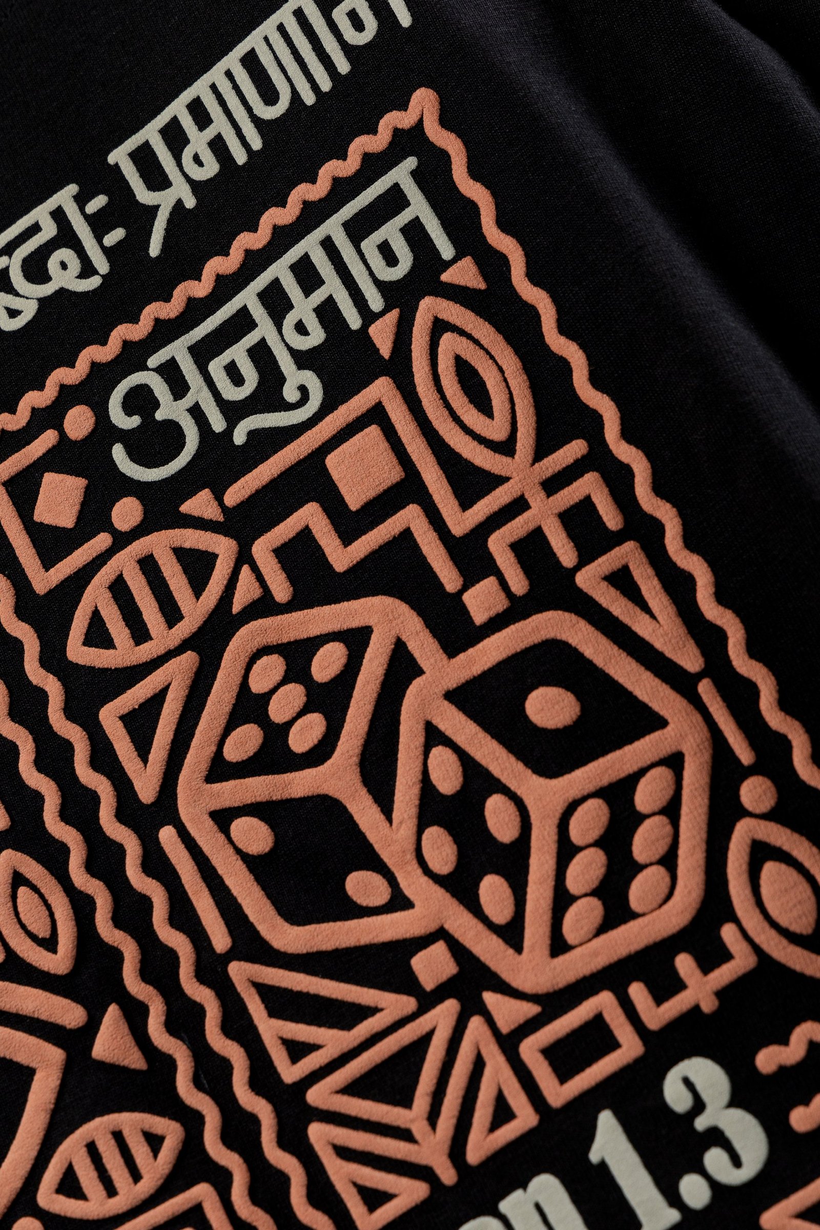 This quartet forms the backbone not just of philosophical debate but of daily discernment. Each pramana removes one more layer of uncertainty, refining our vision and grounding our convictions in clarity. To wear this tee is to don an emblem of epistemic mastery—a tribute to those who seek meaning beyond impulse.
